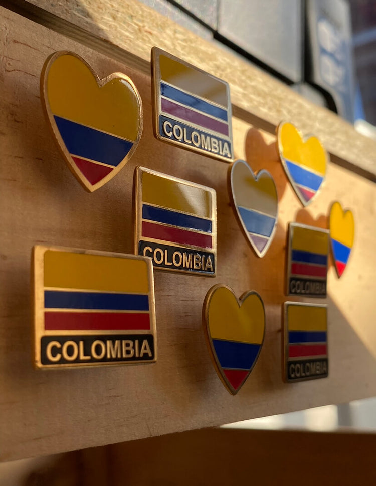 Pines de edición especial de banderas, con color aplicado a mano, tamaño máximo 2.8 cm con baño oro