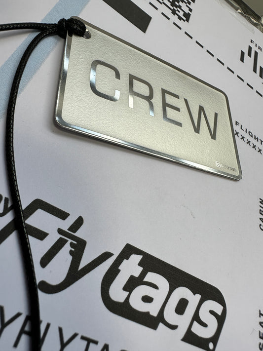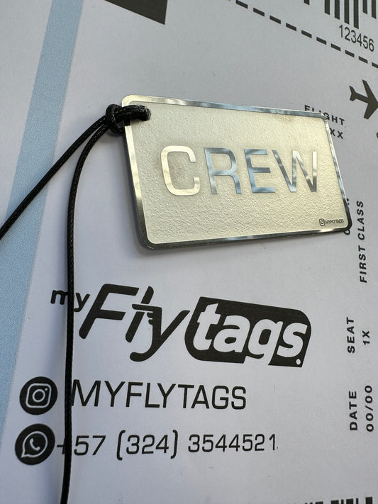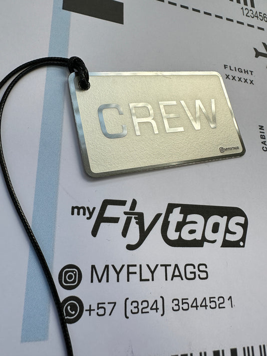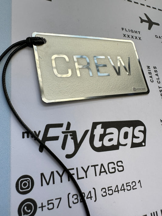 Crew tags metálico fabricado en acero inoxidable, tamaño 8.5 cm x 5 cm, doble cara o grabado por ambos lados, terminación luxury con proceso totalmente artesanal